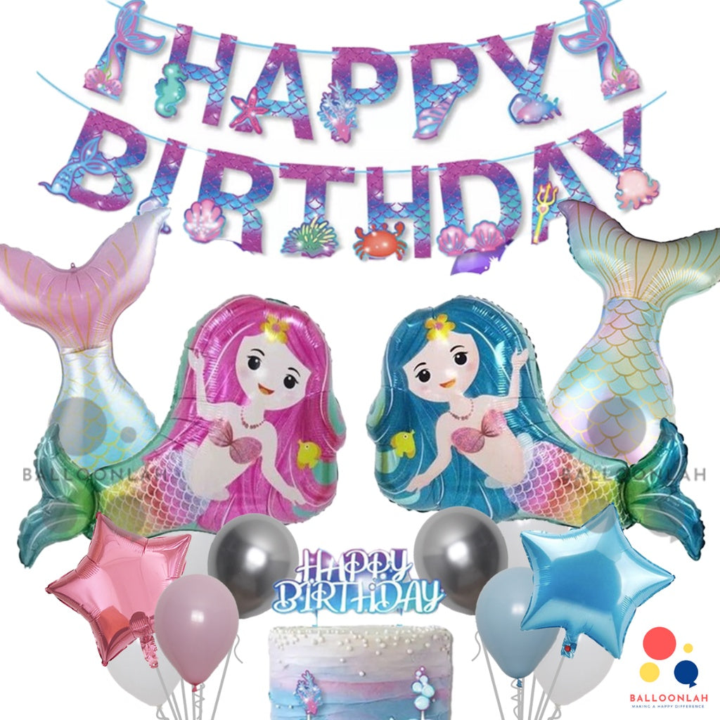 - 1 x 18-inch Happy Birthday, Mermaid Balloon