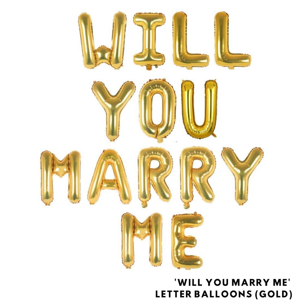 9. 'Will You Marry Me' Letter Balloons in Gold