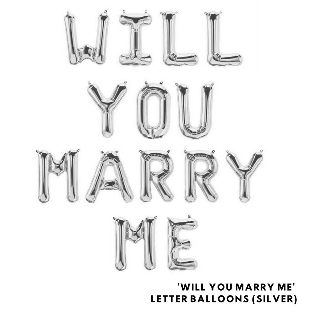 8. 'Will You Marry Me' Letter Balloons in Silver