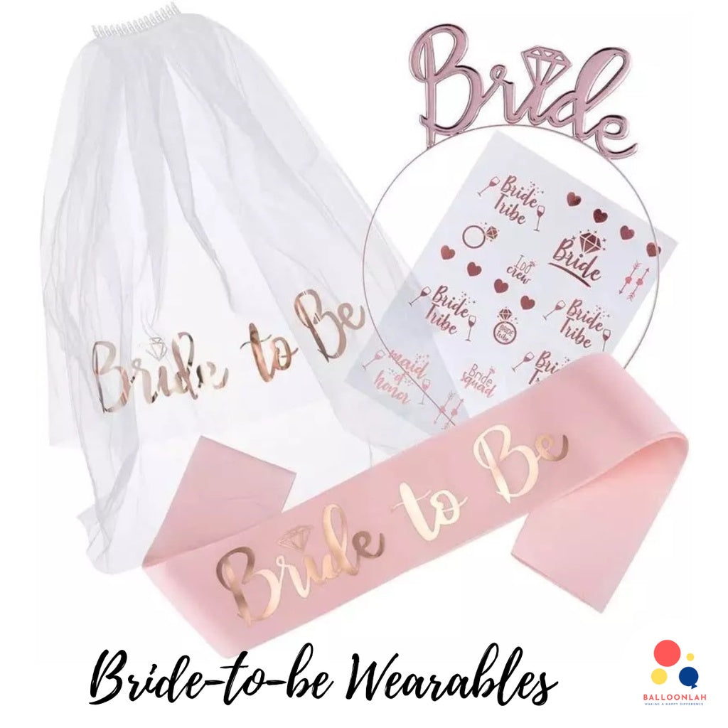 ππ BRIDE TO BE Rose Gold Wearables Hairband Sash Veil Tattoo Hen's Party Night [READY STOCK IN SG]