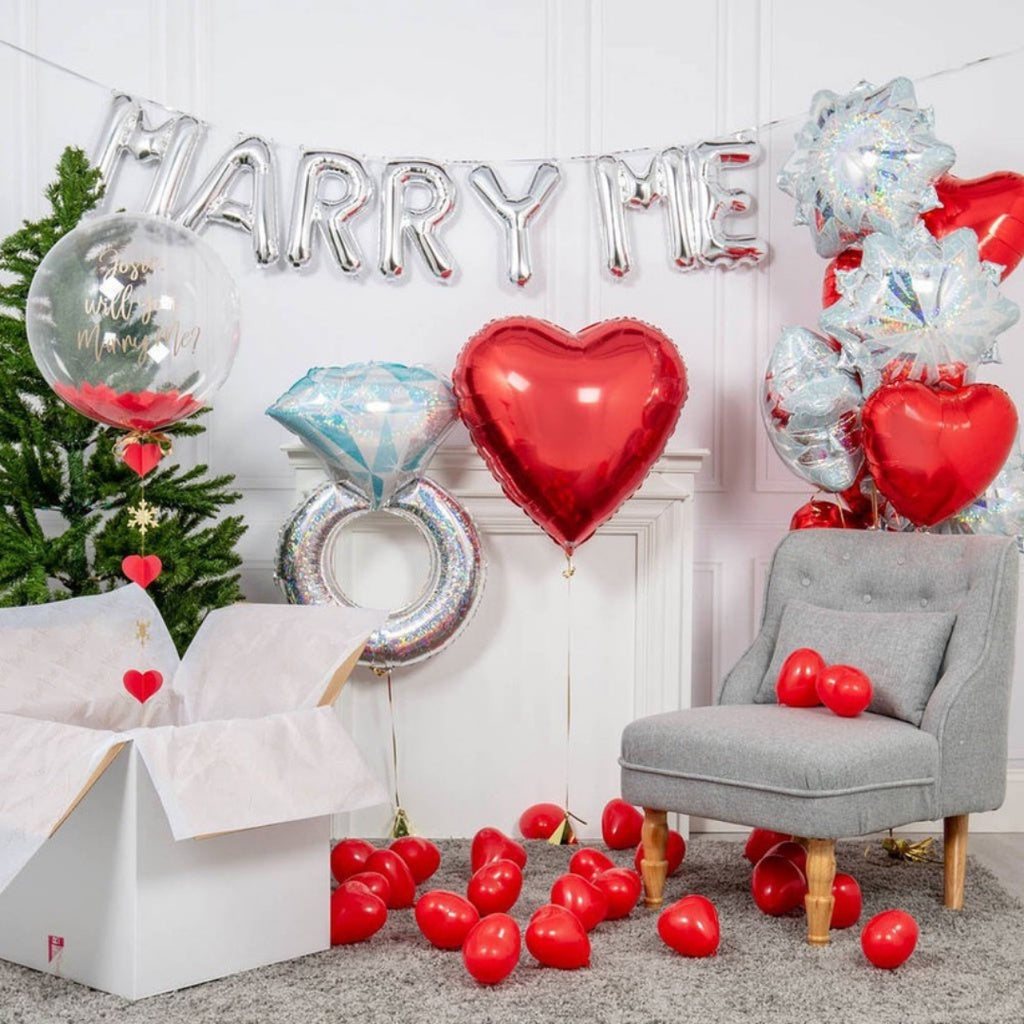 Add more brightness and romance to your engagement party or proposal with these elegant 16" MARRY ME foil balloons! This sweet and romantic MARRY ME sign is perfect to use at your marriage proposal, wedding or wedding photo prop!