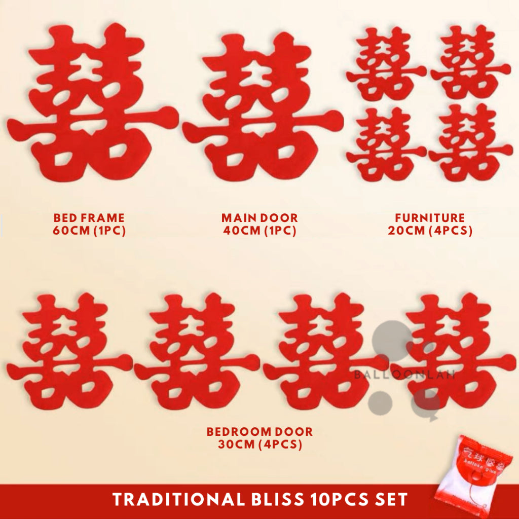 10pcs Chinese Xi Decoration Wedding Decoration Set Modern Traditional [READY STOCK IN SG]