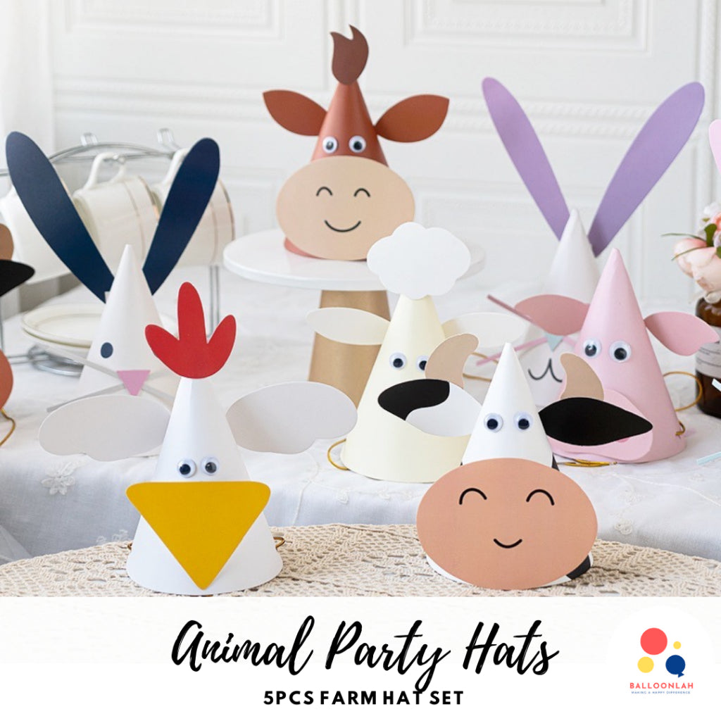 5pcs Farm Animal Party Hat Set Birthday Fun [READY STOCK IN SG]