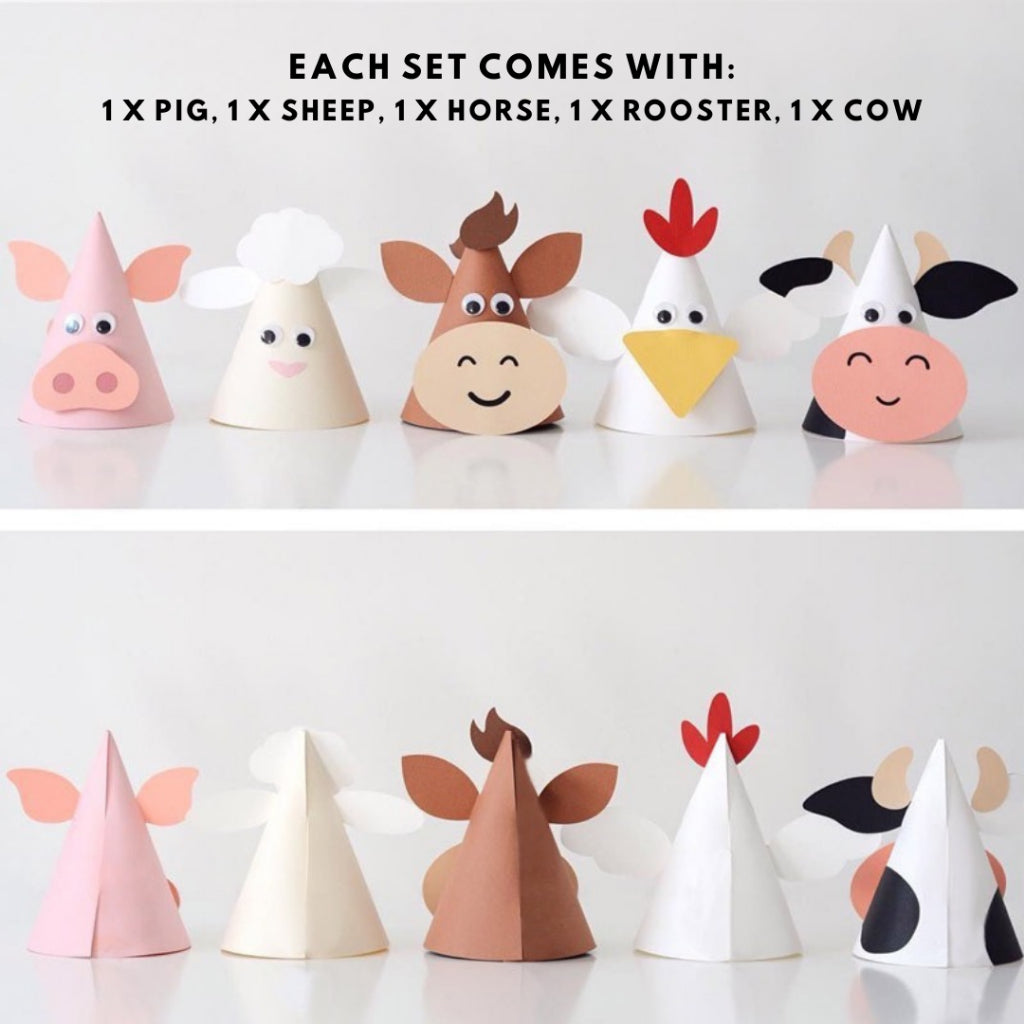 Each DIY set comes with 5 paper hats, including 1 x cow, 1 x horse, 1 x sheep, 1 x pig and 1 x rooster!