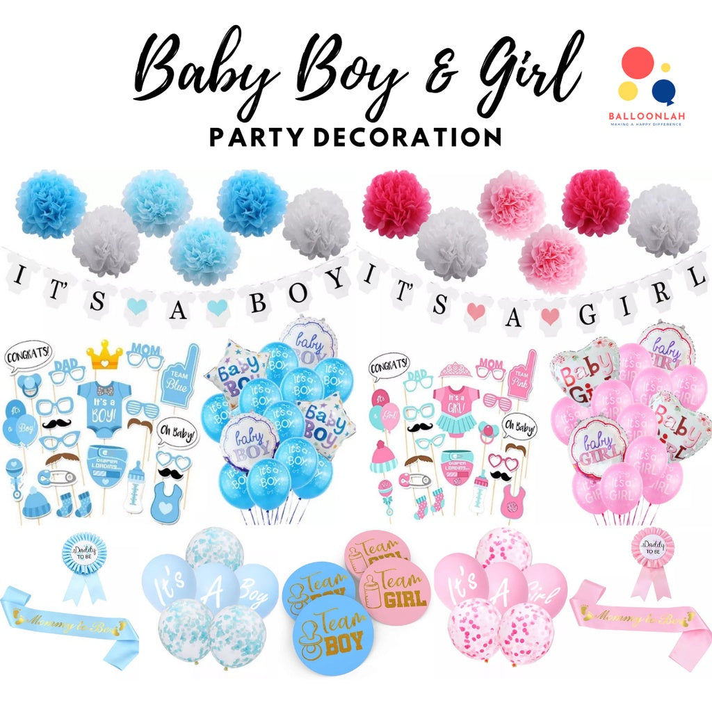 Baby Boy Baby Girl Party Decoration Balloons Sash Banner Baby Shower Gender Reveal [READY STOCK IN SG]