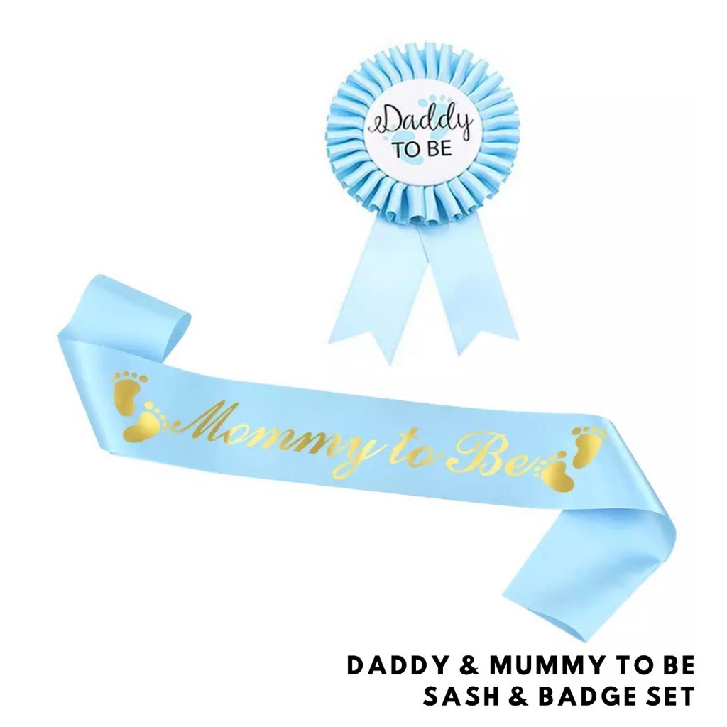 8. Mummy-to-be Sash & Daddy-to-be Badge in Blue