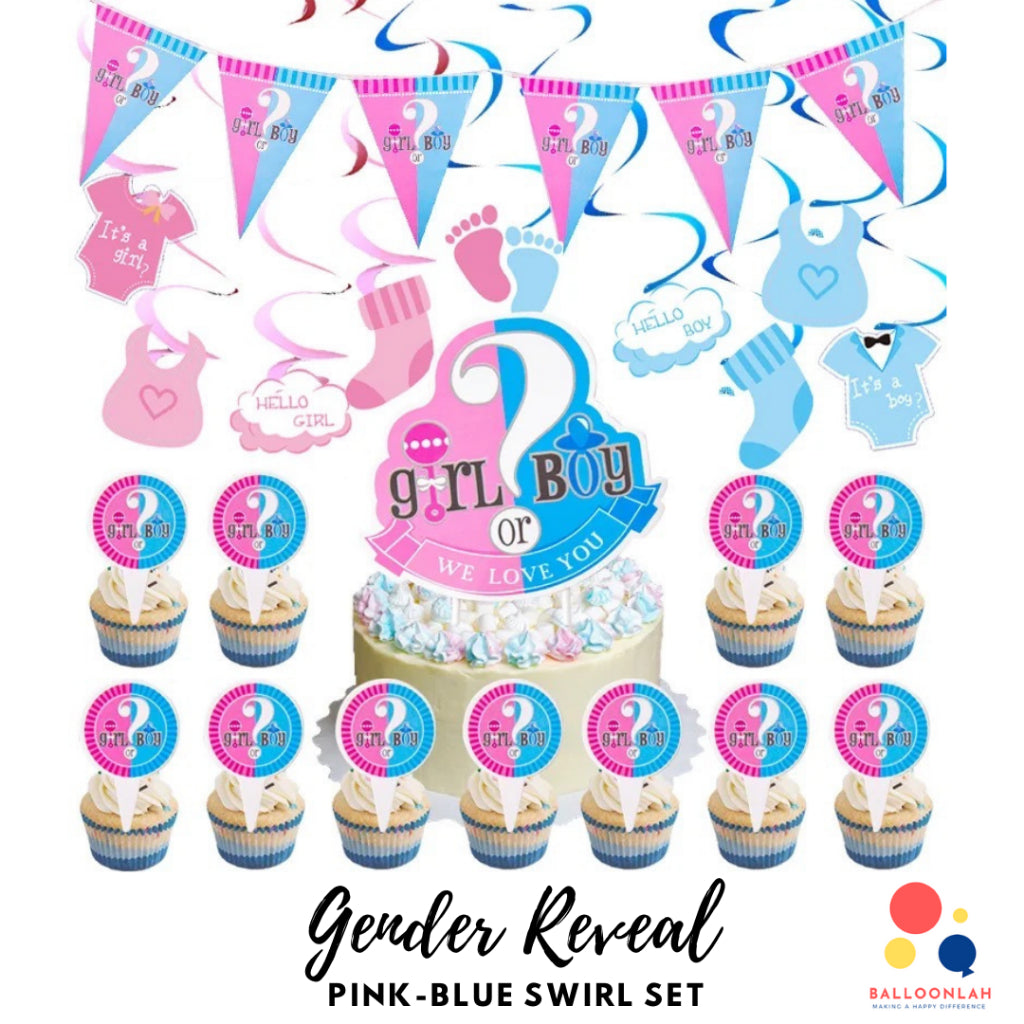 Gender Reveal Pink Blue Swirl Set Decoration Balloon Set Baby Shower [READY STOCK IN SG]