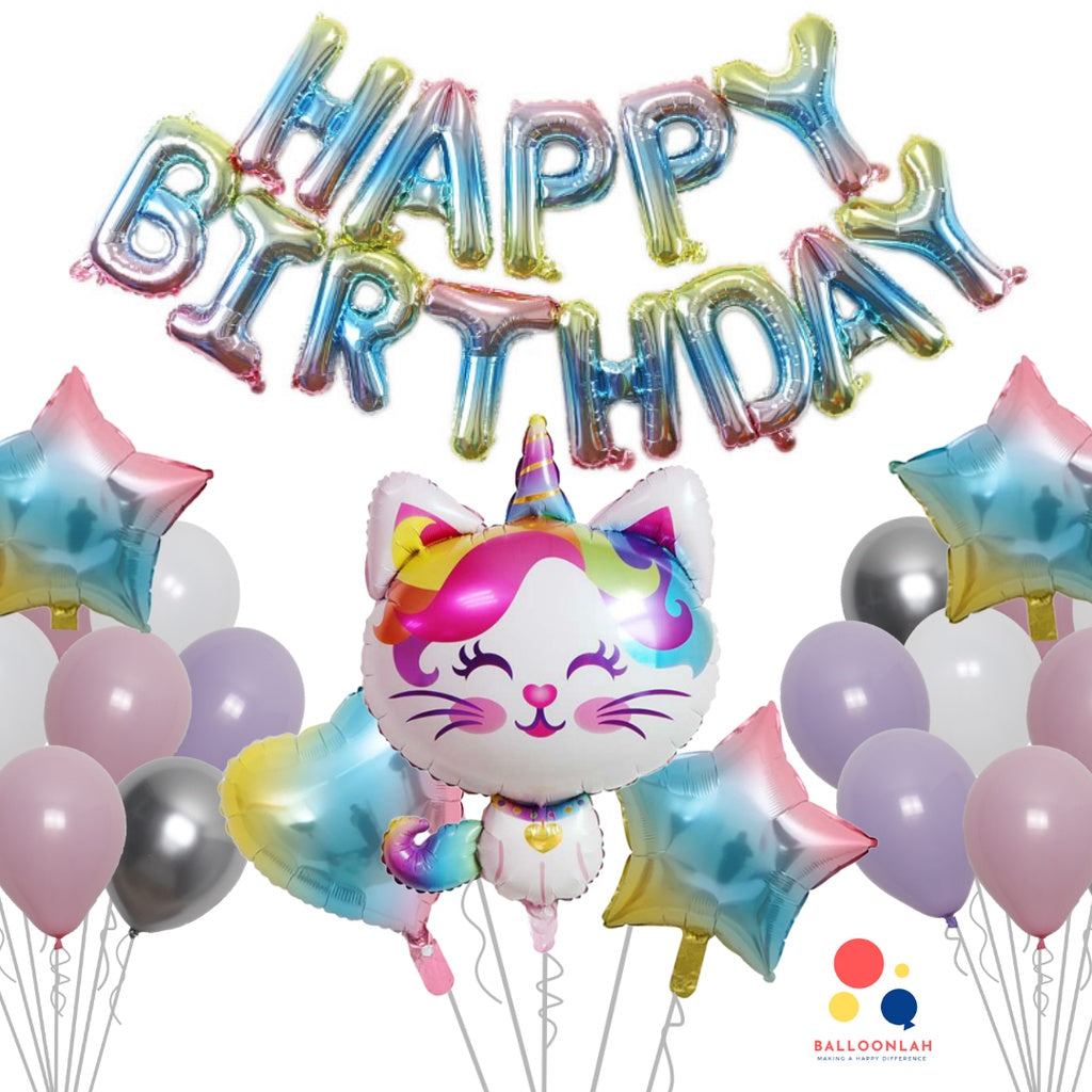 Gradient Unicorn Cat Balloon Bouquet [READY STOCK IN SG]