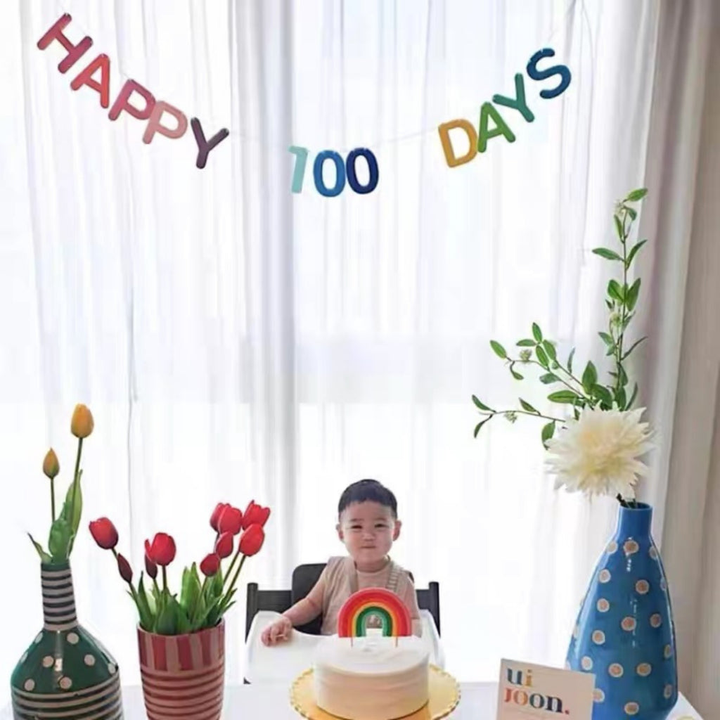 Happy 100 Days Party Banner 1st Birthday Party Bunting Woodland [READY STOCK IN SG]