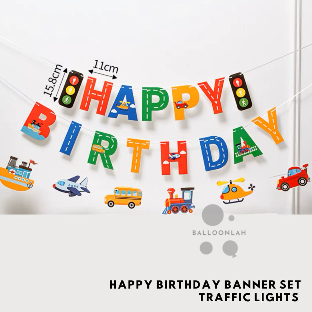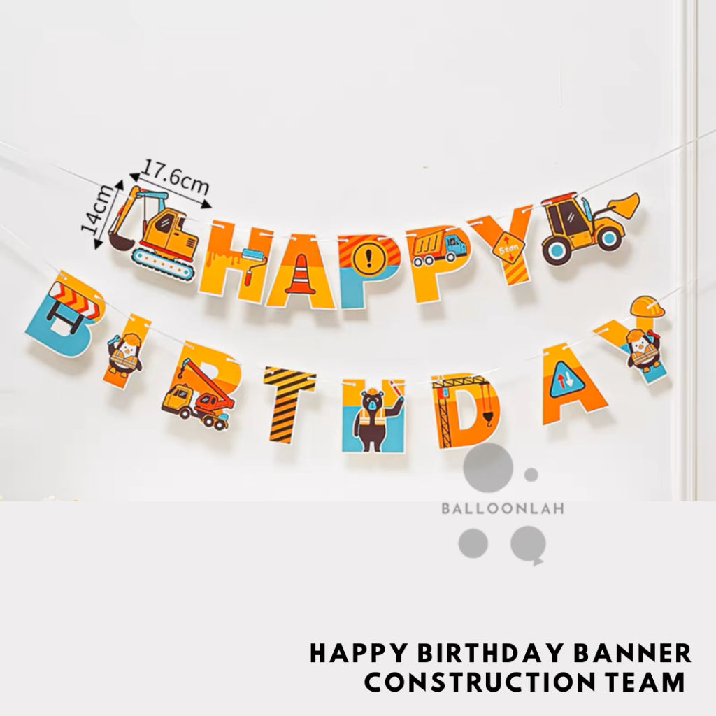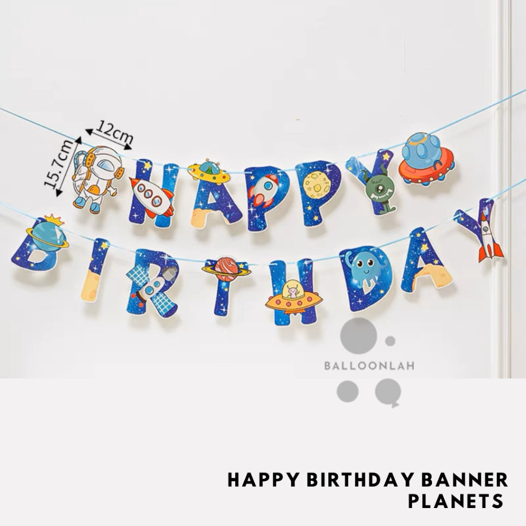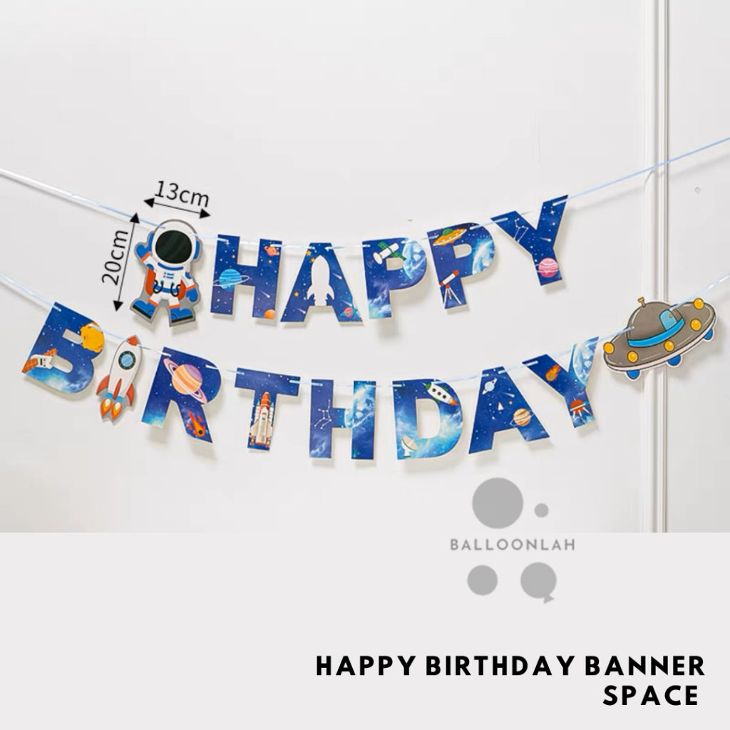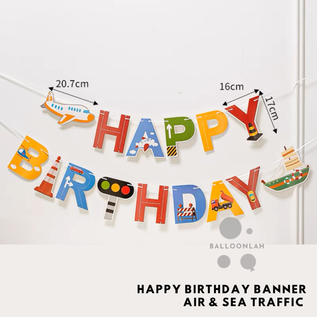 Happy Birthday Party Banner Party Bunting Traffic Construction Daisy Planet Space [READY STOCK IN SG]