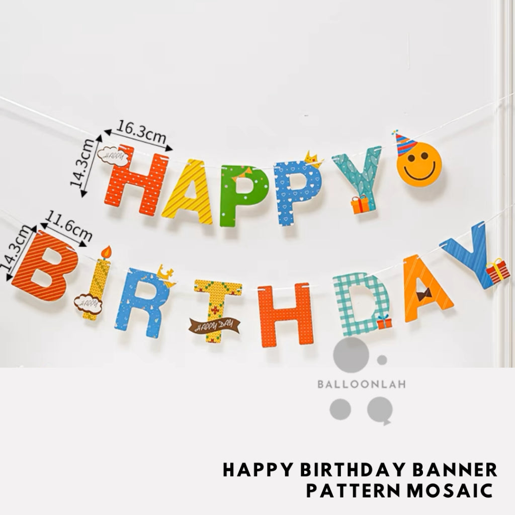 Each pack comes with the Happy Birthday banner, and approximately 2.5m long ribbon for hanging.