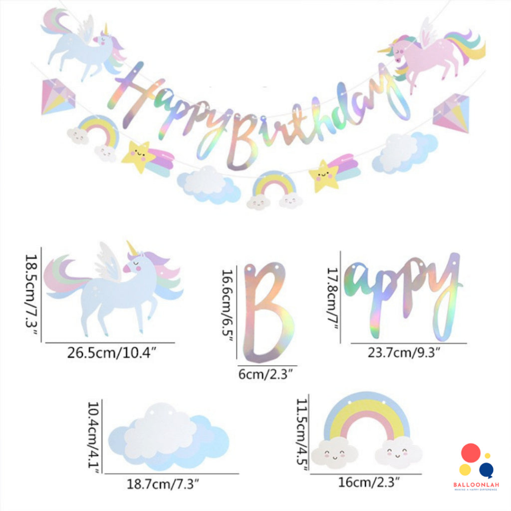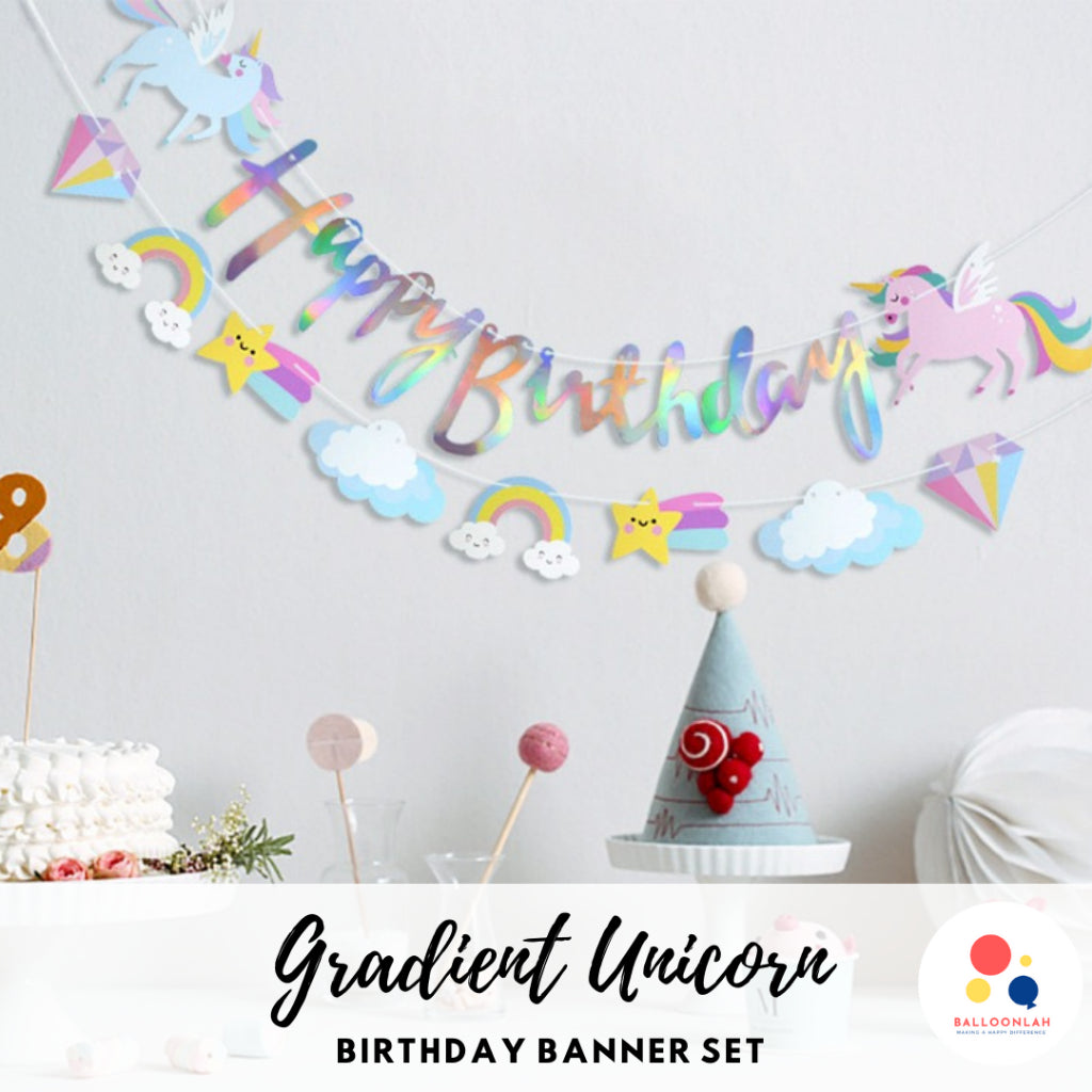 Happy Birthday Unicorn Gradient Party Banner Set Decoration [READY STOCK IN SG]
