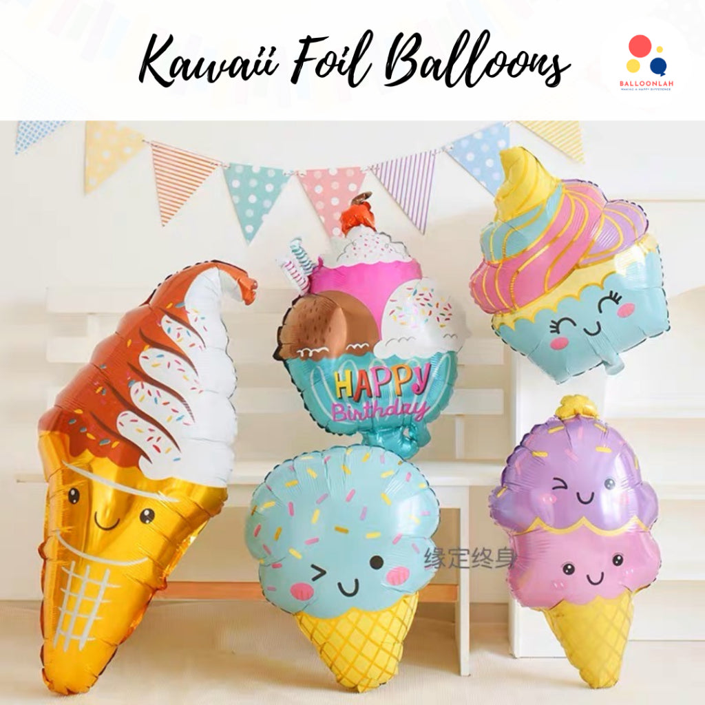 KAWAII Foil Balloon Ice Cream Cupcake Candy Birthday Decoration Animals [READY STOCK IN SG]