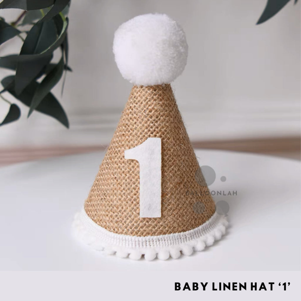 Linen Party Hat Mini Birthday Toddlers One Two Three [READY STOCK IN SG]