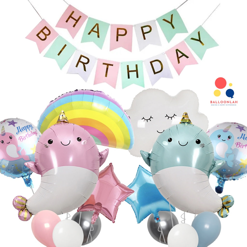 Narwhal Cute Sea Creature Pastel Balloons [READY STOCK IN SG]