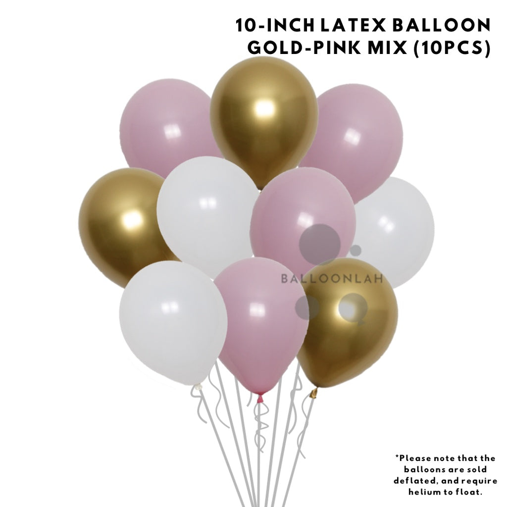 - 10 x Latex Balloon (Gold/Pink/White)