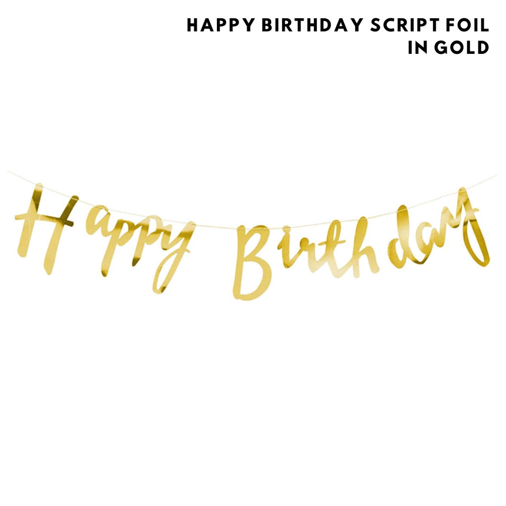 2. Happy Birthday Script Foil Banner (In Gold) -- $5.90