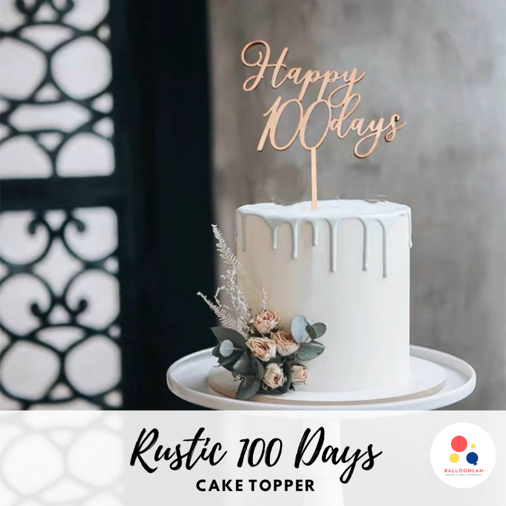 Rustic Themed Wooden Cursive 100 Days Birthday Cake Topper [READY STOCK IN SG]