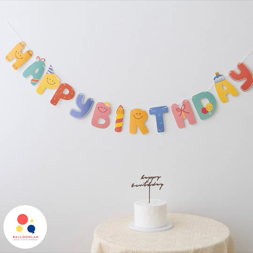 Smiley Pastel Birthday Banner [READY STOCK IN SG]