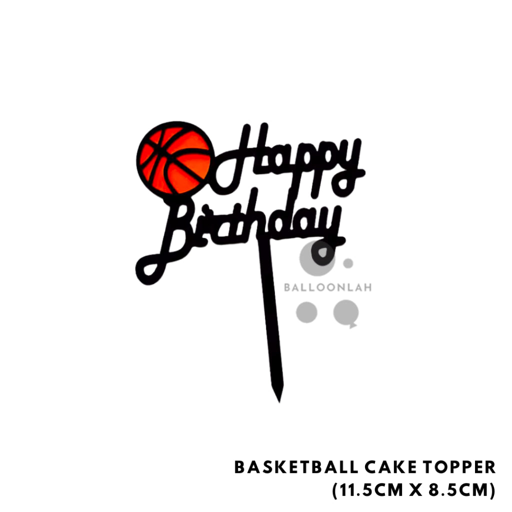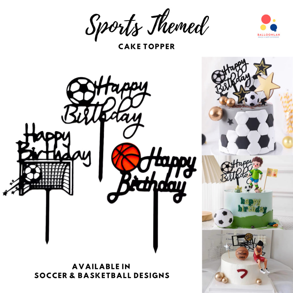 Sports Happy Birthday Cake Topper Basketball Soccer Classic Acrylic [READY STOCK IN SG]